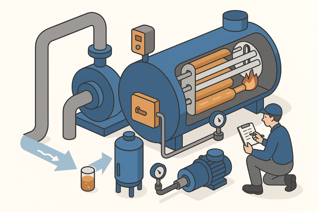 ボイラー設備の法定点検、チューブ洗浄、燃焼調整などを実施。安全で効率的な運転を維持するためのメンテナンスを行っています。